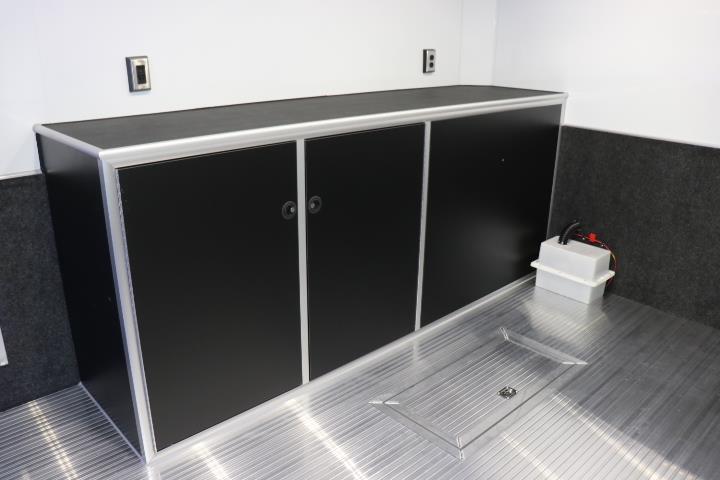 Add aluminum storage cabinets on the roadside wall of the trailer (32' Stacker Only)